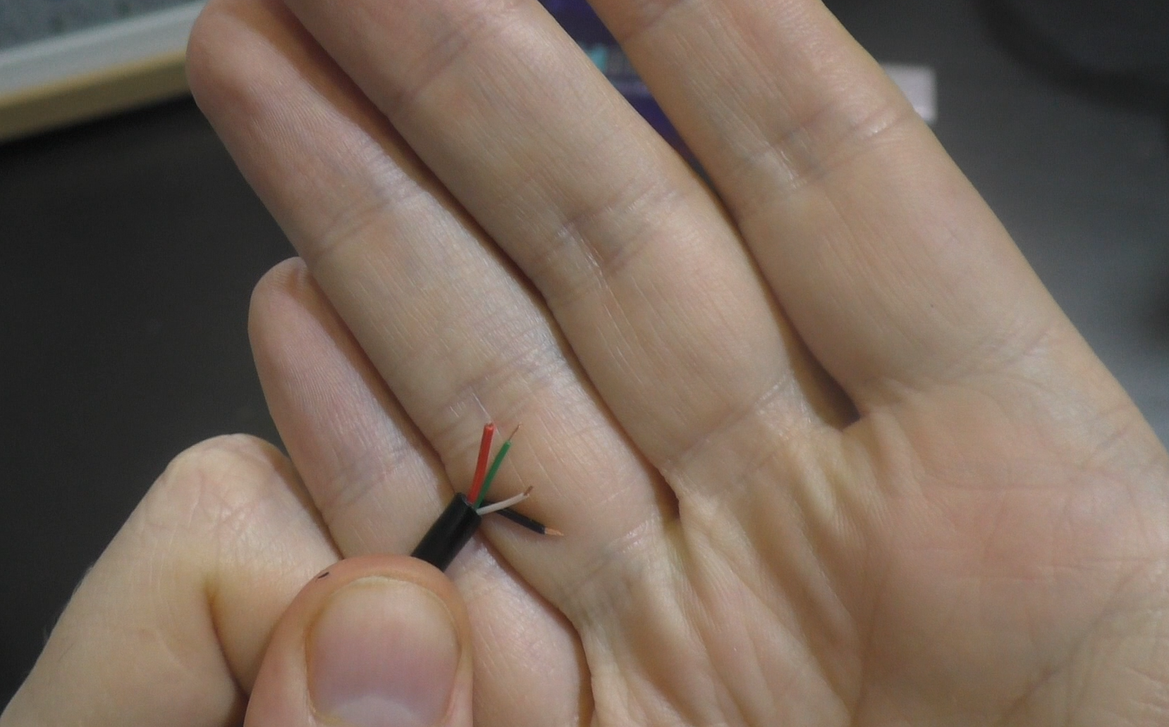а сам Pikvm так и общается с KVM, по uart интерфейсу. По этому этот пульт убираем в сторону, откусываем один конец USB A от провода, который предназначен для подключения пульта этого. Оголяем 3 провода из 4рех. А именно белый, зеленый и черный:
