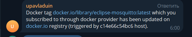 И вот попался мне контейнер под названием DIUN, который расшифровывается как: Docker Image Update Notifier . Этот контейнер прям служит для того, чтоб уведомлять о новых версиях контейнера.