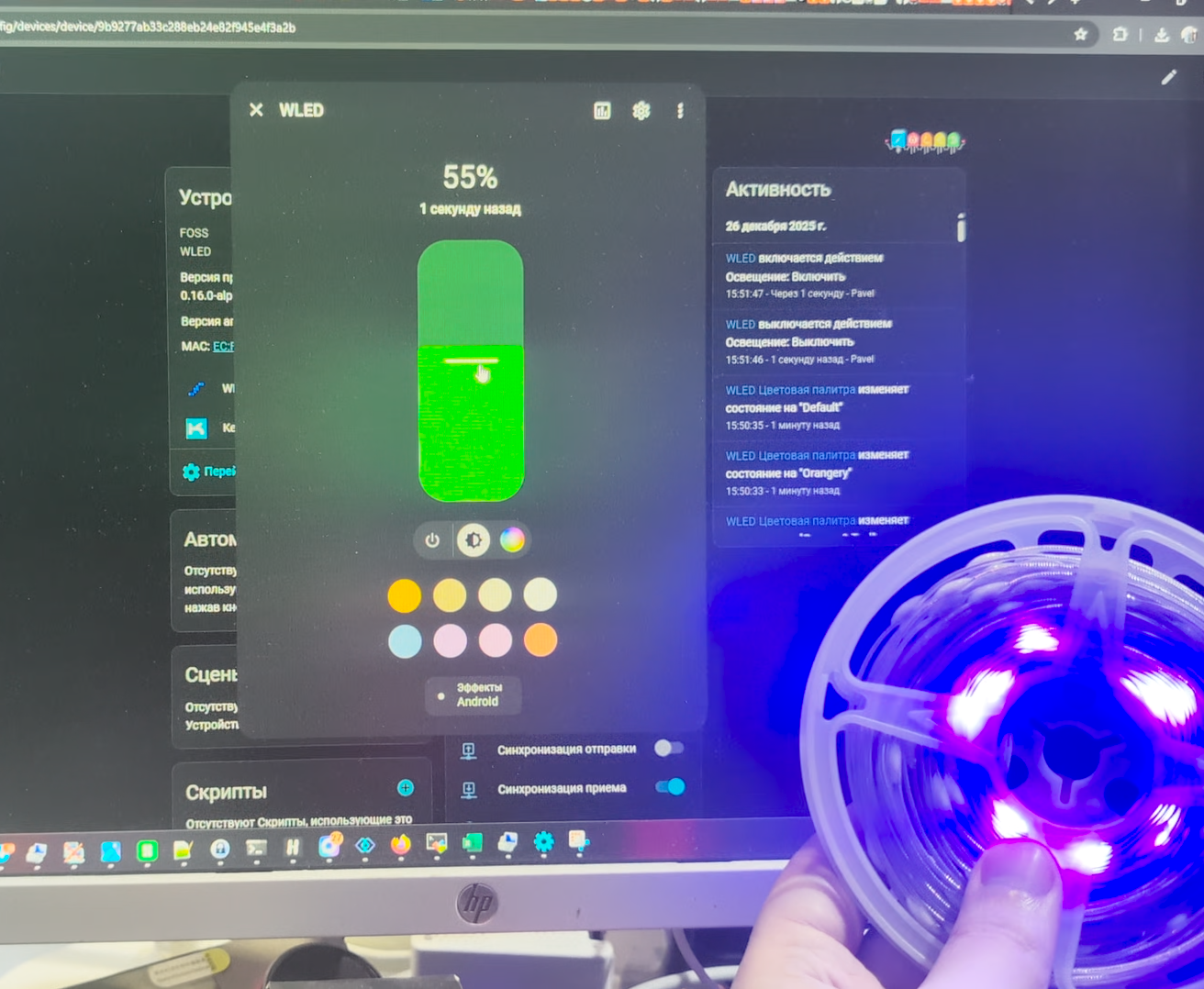 Ну вот и все. Теперь гирлянда у нас управляется как через Web интерфейс, так и через приложение на android wled, так и через home assistsant: