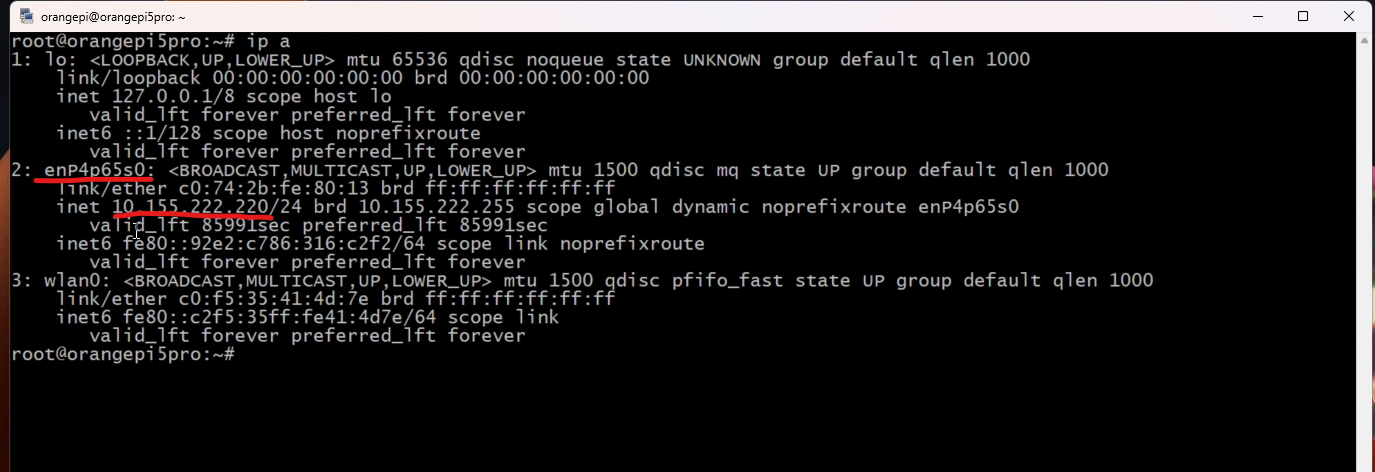 мой интерфейс называется enP4p65s0. Его нужно запомнить, мы далее его будем прописывать.