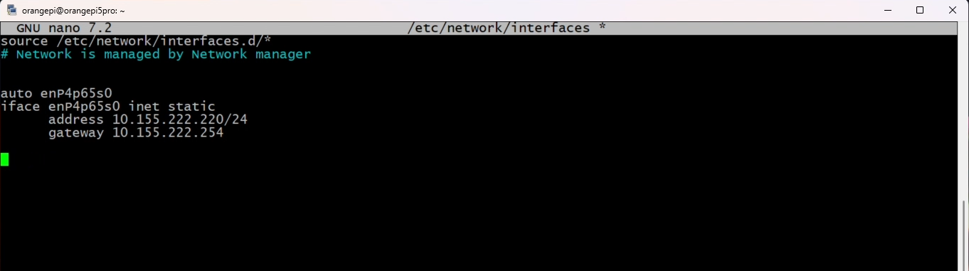В настройках прописывает ip адрес с маской 24. Шлюз (gateway) и сетевой интерфейс через который Linux Bridge будет работать. У меня это enP4p65s0